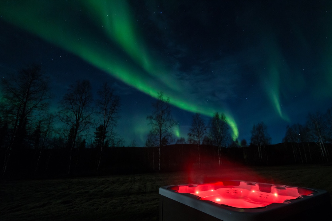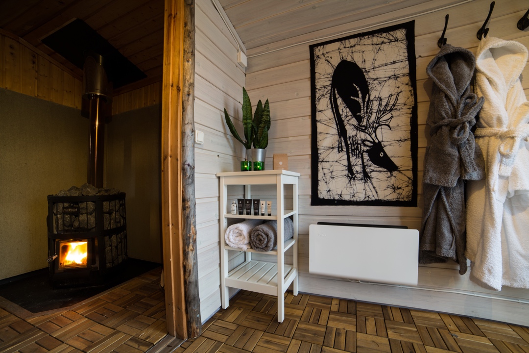 A showcase open fire in the centre of the cabin, a wood fired Sauna, Outdoor Jacuzzi and attention to details with high standard on the interior is what welcomes you at Loggers Lodge.