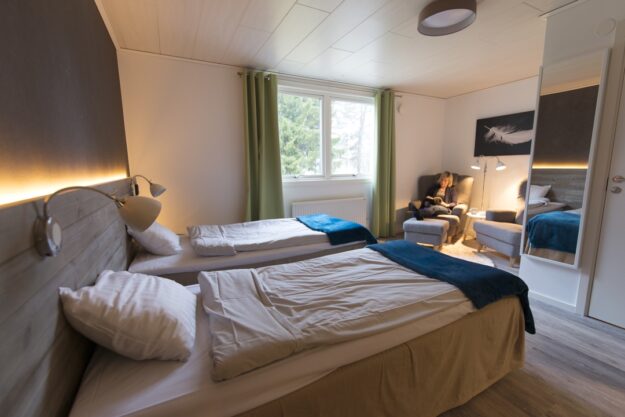We recommend that guests pre-book at least half board (including dinner). There are a wide range of activities, such as snowmobile tours, that often include lunch. Lunch is also available at the guesthouse on arrangement. Guests are able to purchase wine and beer on location.