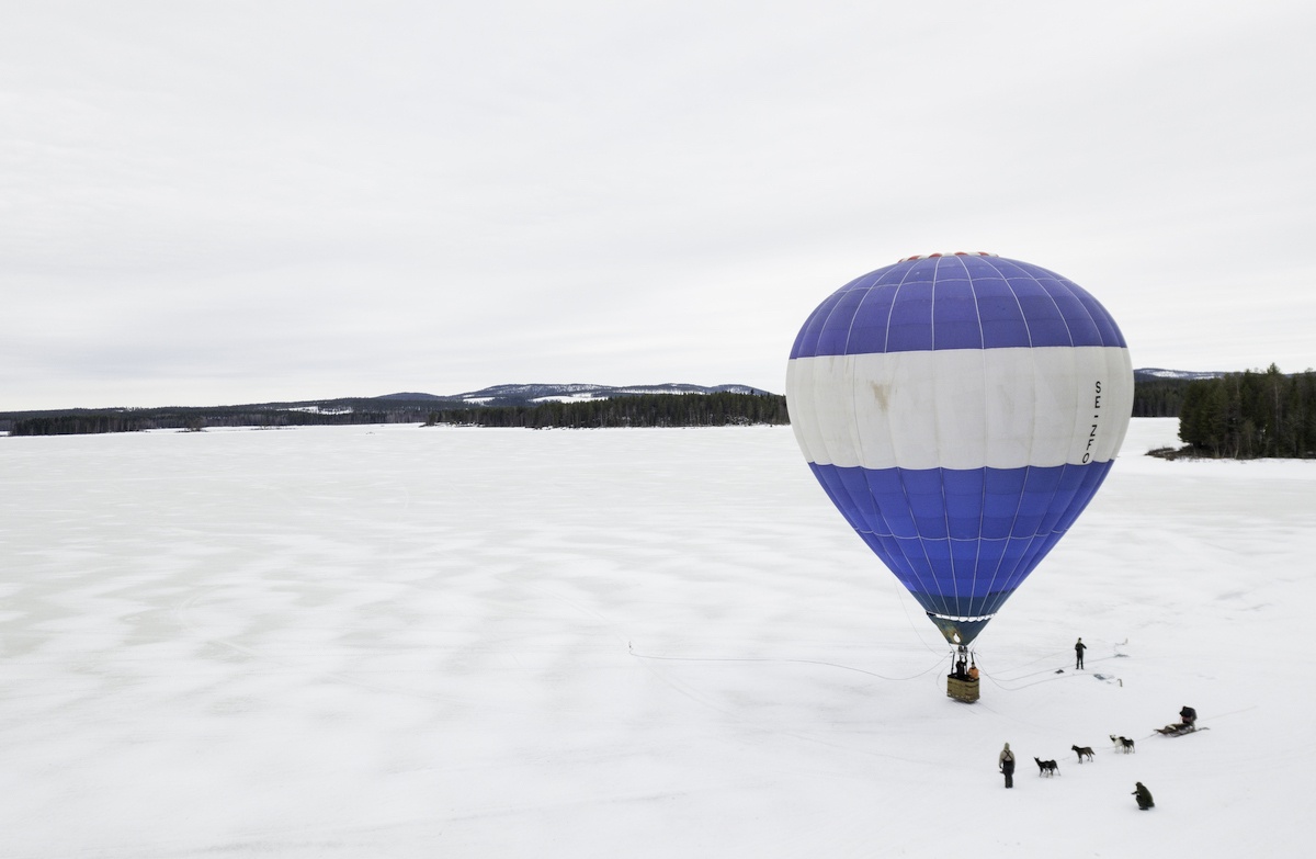 Full day balloon expedition Flying from point A to X. You get involved in the launch, flying, landing and folding the balloon after the flight. When we land and have packed the equipment you get picked by snowmobile and/or a car and we go for lunch and bubbles! (Tradition when flying balloon). Full day out more or less, and you will learn a lot about Råne River Valley, history and nature here. Told and seen from up in the sky. Total time of activity 4-5h. Time in the air 20 min to 1h 15 min.