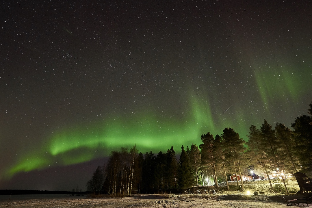 - The Aurora- Welcome to the enjoy the changing and fascinating Arctic lights. Seeing the Northern Lights is probably on most people’s bucket list. Northern Lights occur in what is often called the Aurora Zone – between 650 and 720 North, the Arctic Circle is 660 North. Sápmi Nature Camp is located on 670North. Sometimes, during geomagnetic storms it can be viewed in much wider area. Sápmi/Swedish Lapland is an excellent area for experiencing Northern Light. Sápmi Nature Camp is located far above the Arctic Circle and is also far from any artificial light pollution. The chance to see Aurora is pretty good here. Naturally, the last part of having a good chance to see it is clear weather – and that’s hard to predict nowadays, without clear skies it will not be visible.