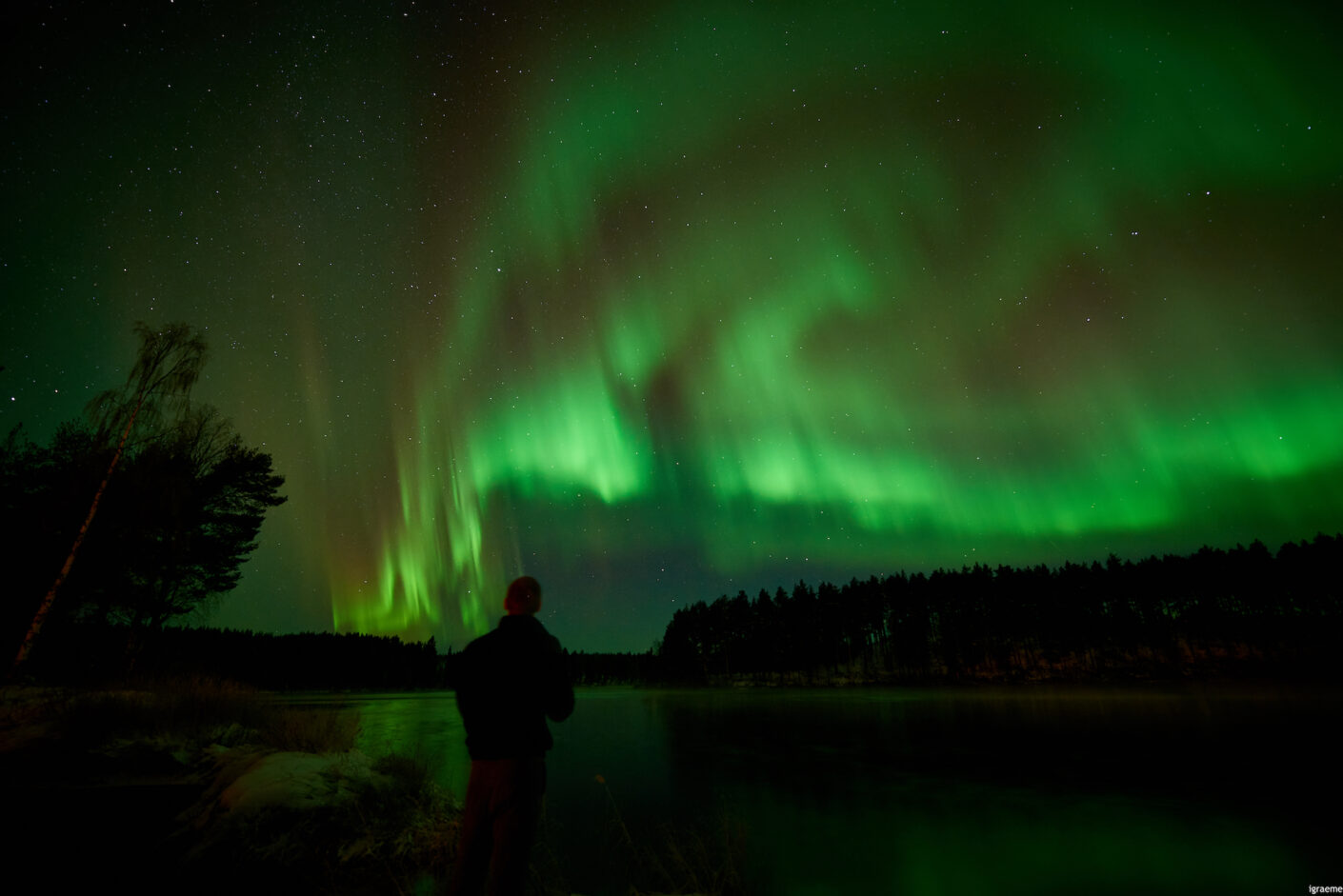 - The Aurora- Welcome to the enjoy the changing and fascinating Arctic lights. Seeing the Northern Lights is probably on most people’s bucket list. Northern Lights occur in what is often called the Aurora Zone – between 650 and 720 North, the Arctic Circle is 660 North. Sápmi Nature Camp is located on 670North. Sometimes, during geomagnetic storms it can be viewed in much wider area. Sápmi/Swedish Lapland is an excellent area for experiencing Northern Light. Sápmi Nature Camp is located far above the Arctic Circle and is also far from any artificial light pollution. The chance to see Aurora is pretty good here. Naturally, the last part of having a good chance to see it is clear weather – and that’s hard to predict nowadays, without clear skies it will not be visible.